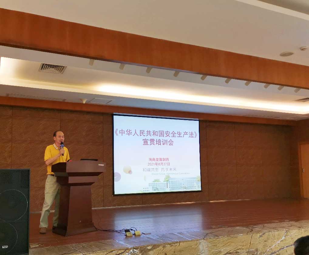 海南皇隆制藥股份有限公司高度重視此次新安全生產(chǎn)法的頒布實(shí)施,為了提高全體員工對新《安全生產(chǎn)法》的認(rèn)識,全面加強(qiáng)安全生產(chǎn)法治觀念,提升企業(yè)安全管理水平,2021年8月27日組織開展新《安全生產(chǎn)法》宣貫培訓(xùn)會議,公司安委會主任陳益智、副主任史江永、何晶及陳國華、馬和東、葉華等16名安委會成員、公司專職(兼職)安全員、各部門領(lǐng)導(dǎo)及骨干成員等參加了此次培訓(xùn)